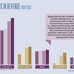 On the revenue front, 43 of the 60 companies on the Business Journal list recorded gains in revenue, led by a jump of $6.18 billion at Walt Disney Co. and $6.07 billion at Live Nation Entertainment Inc.